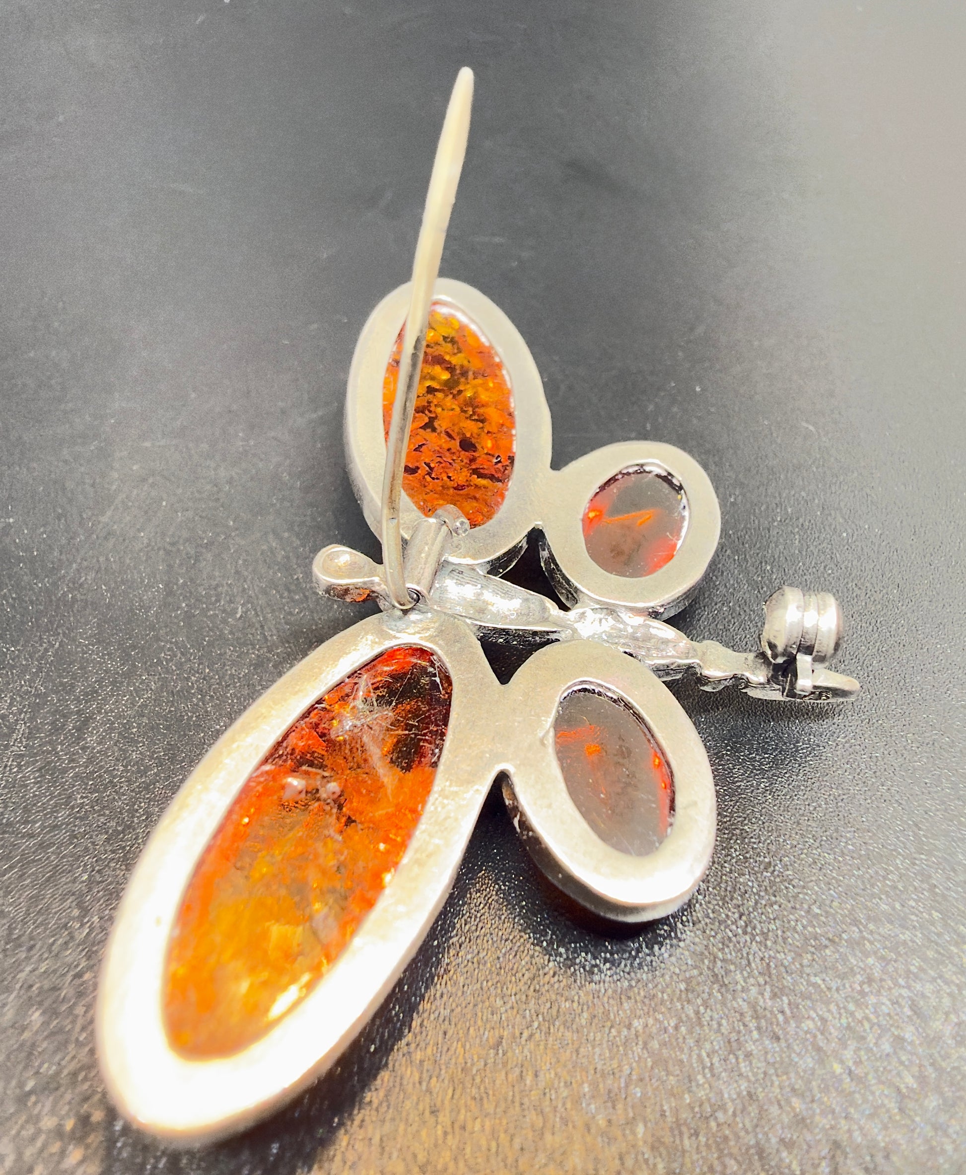 Brosche aus 925er Silber mit baltischem Bernstein – Schmetterling, Vintage