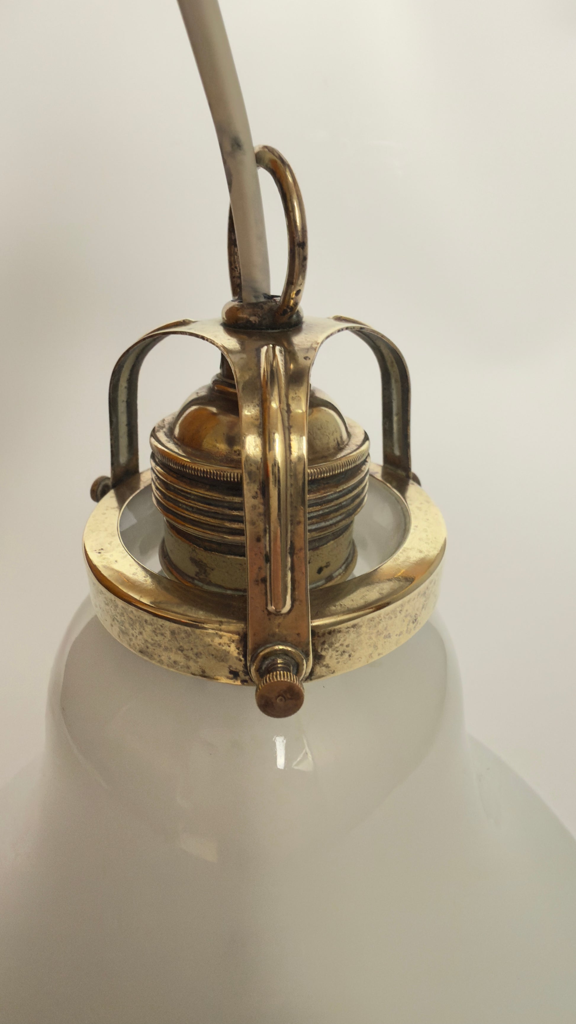 Opalglas-Pendelleuchte mit Messingaufhängung – ca. 1940–1950er Jahre