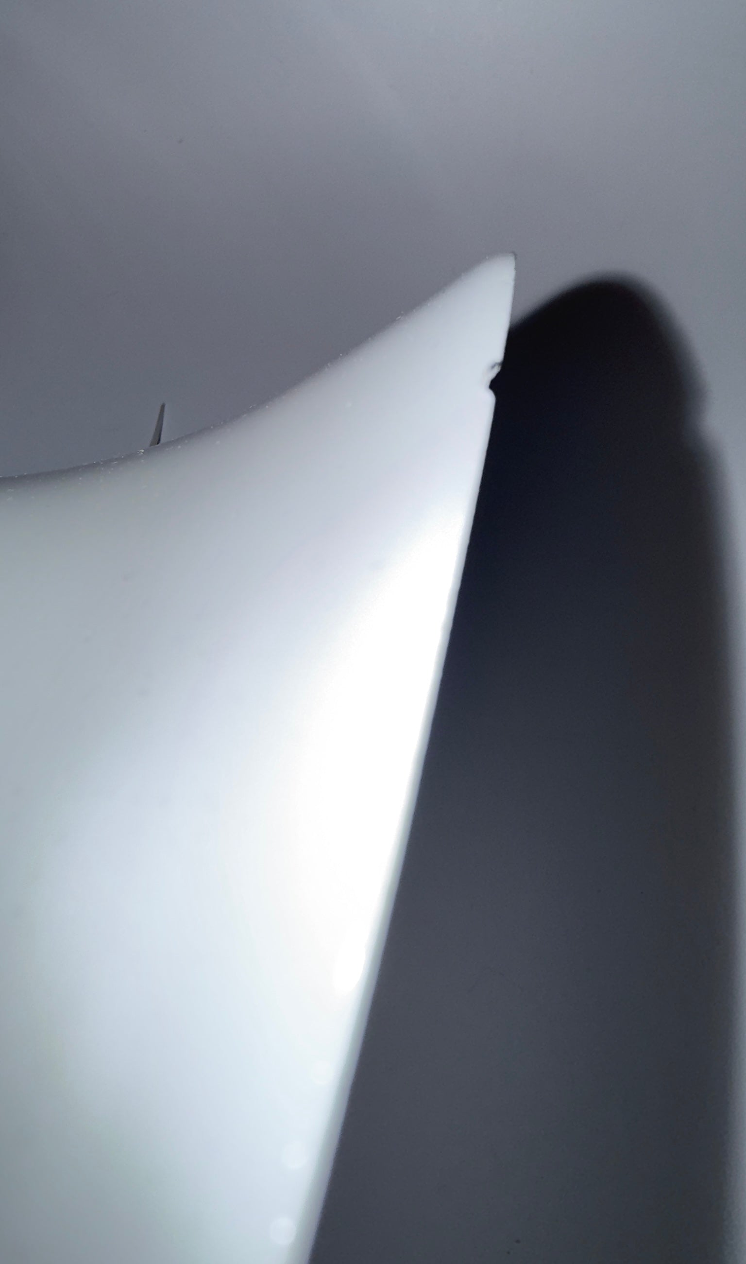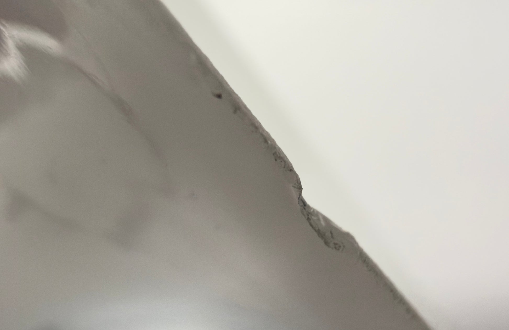 Das Glas weist am Rand Absplitterungen auf, die bei genauerem Hinsehen erkennbar sind, aber im aufgehängten Zustand nicht auffallen. Zudem zeigen die Metallteile altersbedingte Gebrauchsspuren und Patina. Der Preis berücksichtigt diese Absplitterungen.